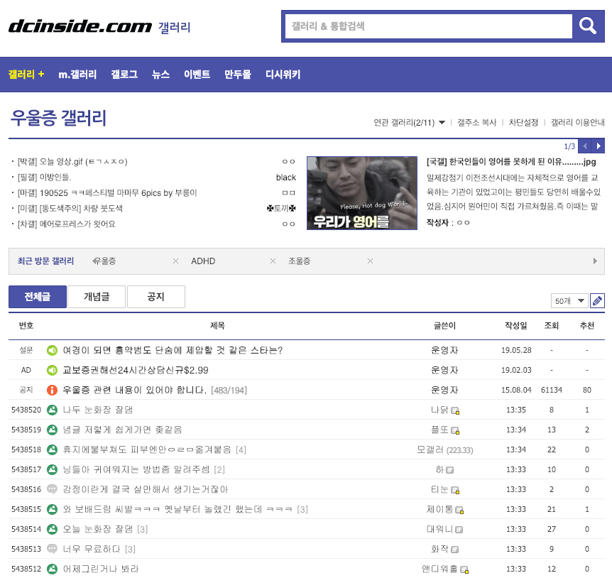 디씨인사이드 우울증 갤러리입니다.