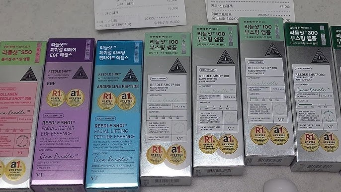 진짜 이게 뭐야, 3천 원에 이런 퀄리티라니 다이소 미쳤나 싶음. 원래 VT 본품은 50ml에 3만 원대인데, 다이소는 소분해서 12ml(2ml x 6개)로 싸게 내놓은 거라 입문용으로 딱이야. 숫자가 높을수록(100, 300, 500) 미세 바늘 함량이 많아져서 자극도 쎄진대. 나는 피부 얇은 편이라 100부터 시작해보려고!