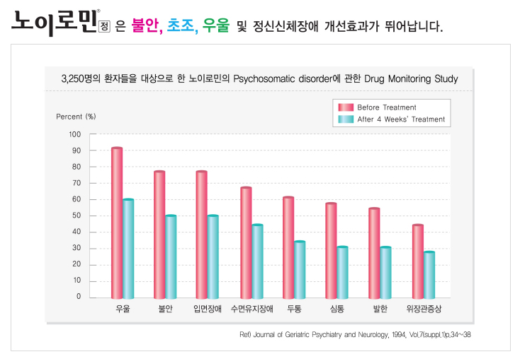 - 약국에서 바로 구할 수 있는 약으로는 유유제약의 '노이로민'이 있습니다. 노이로민 판매처 홈페이지 링크입니다.